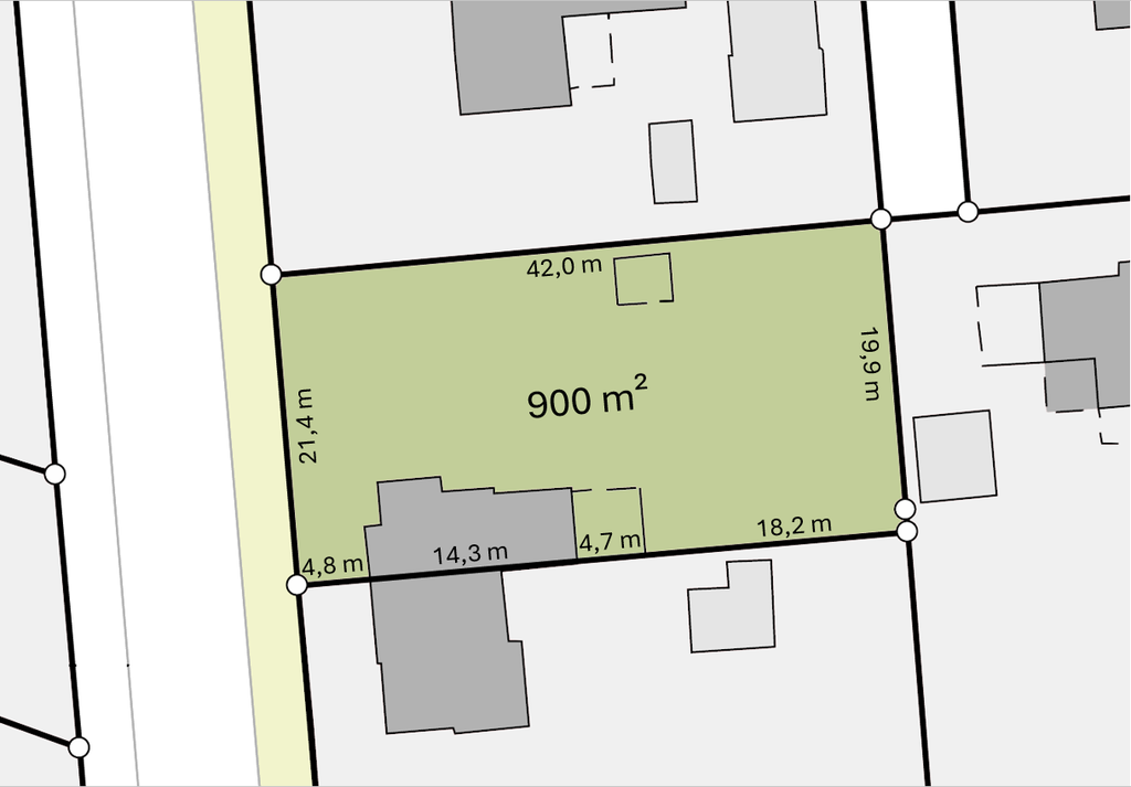 Aktuell steht ein Grundstück mit einer kleinen Haushälfte und einer Gesamtfläche von 900 m² zum Verkauf (siehe hier).
