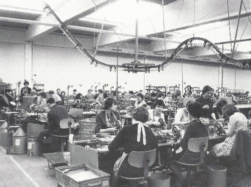 1955 gebauten Werkshallen arbeiteten zeitweise über 3.000 Beschäftigten an den Fließbändern zur Herstellung von Elektro-Kleinstmotoren.