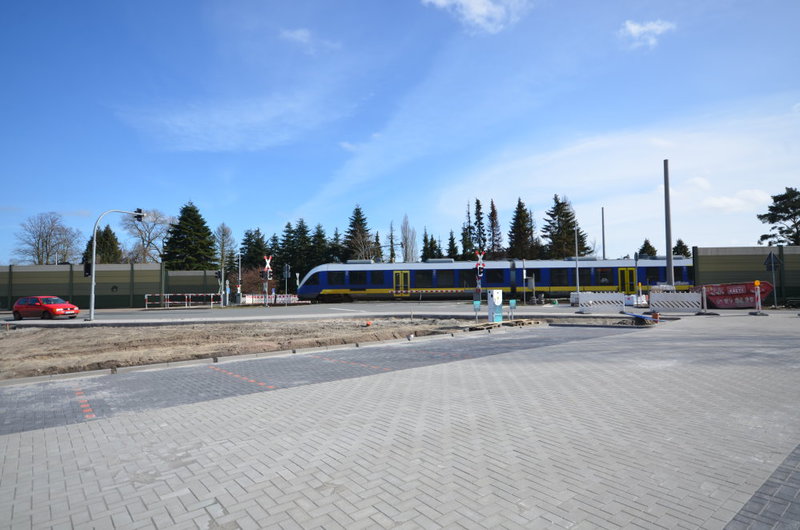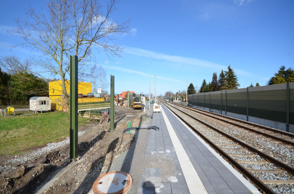 Manuel Greve ist für den Bauherrn, das ist die DB Station und Service, Projektleiter für das Projekt in Jaderberg. Er erklärte auf Nachfrage des Friebo, dass schon in der kommenden Woche die ersten sogenannten Sperrpausen für den Bahnverkehr für Aufbauarbeiten genutzt werden. Zuerst ist der Bahnsteig westlich der Schienen, also in Fahrtrichtung Oldenburg, an der Reihe: „Es werden zunächst die Elemente der Lärmschutzwand Stück für Stück umgesetzt, so dass auch während der Bauphase ein Lärmschutz für die Anwohner zumindest größtenteils gewährleistet bleibt.“ Dann wird mit dem Einsetzen der Fundamente für den eigentlichen Bahnsteig begonnen.“ Gearbeitet wird dabei auch nachts, denn dann gilt die Sperrpause, also das Fahrverbot für Züge. „Die erste Pause gilt vom 25. Mai bis zum 8. Juni“, informiert Manuel Greve, „eine weitere dann vom 15. bis zum 29. Juli.“ Der zweite Bahnsteig in Fahrtrichtung Wilhelmshaven wird nördlich des Bahnüberganges, also ortsauswärts, gebaut. Beide Bahnsteige sind etwa 220 Meter lang. Wegen der Lage des Haltepunktes unmittelbar am Bahnübergang ist es möglich, auf eine zusätzliche Fußgängerüberwegung zu verzichten. Den Parkplatz wird die Gemeinde Jade schließlich erstellen, dafür gab es eine Förderzusage auch vom Landkreis Wesermarsch.