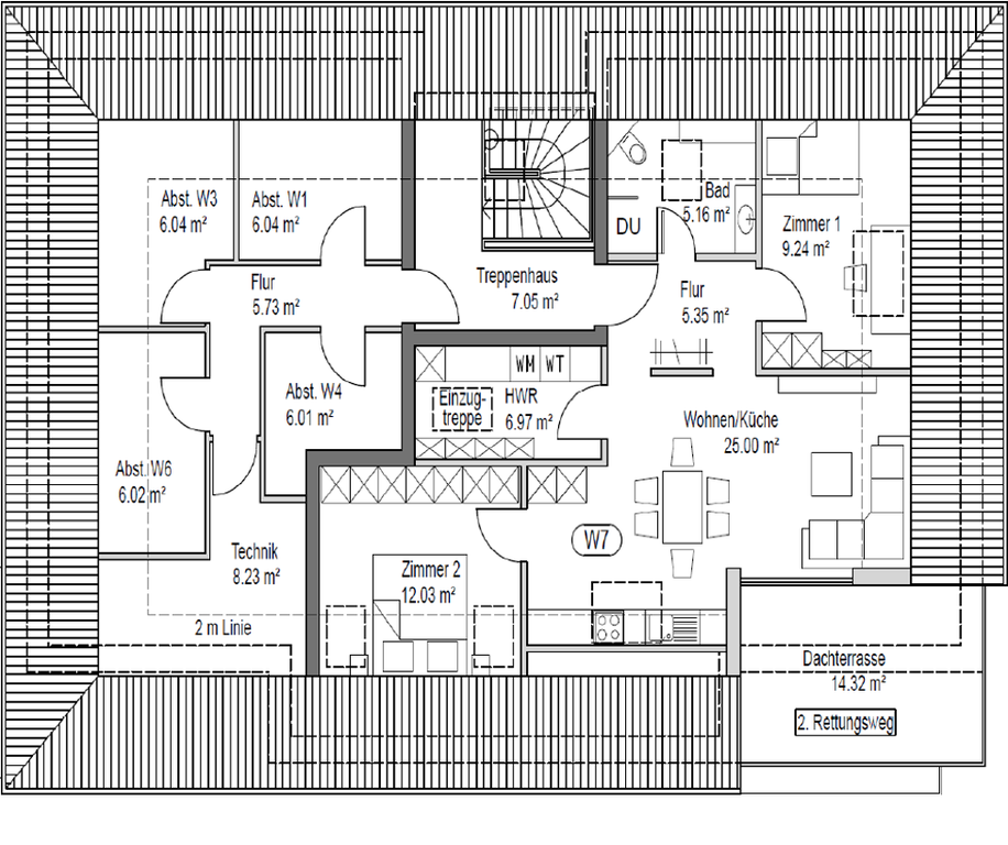 - Lüftungsanlage zur kontrollierten Be- und Entlüftung;