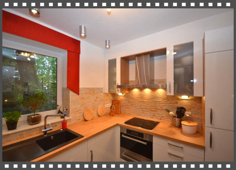 Hinweis: Um die Raum charakterisierenden Bauteile wie Fenster und Türen möglichst umfassend abbilden zu können, wurden diese Fotos mit einem Weitwinkel-Objektiv aufgenommen. Der räumliche Eindruck vor Ort ist i.d.R. weniger großzügig.