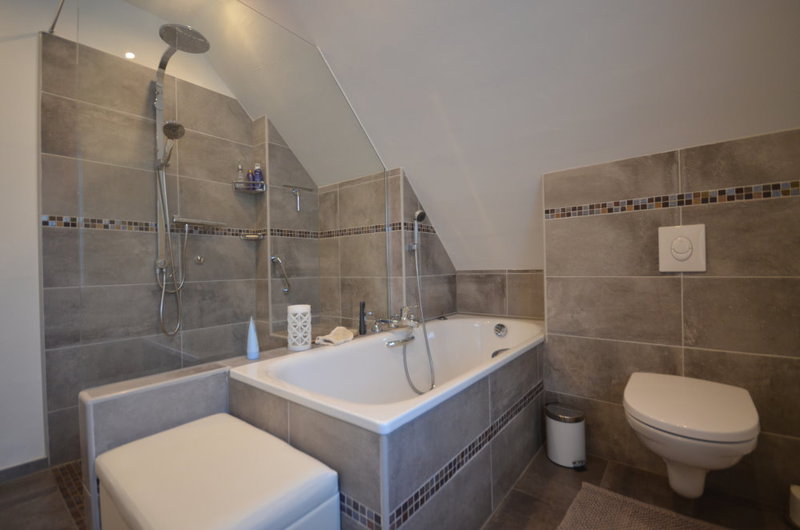 - neuwertiges Badezimmer mit großer Dusche und Badewanne