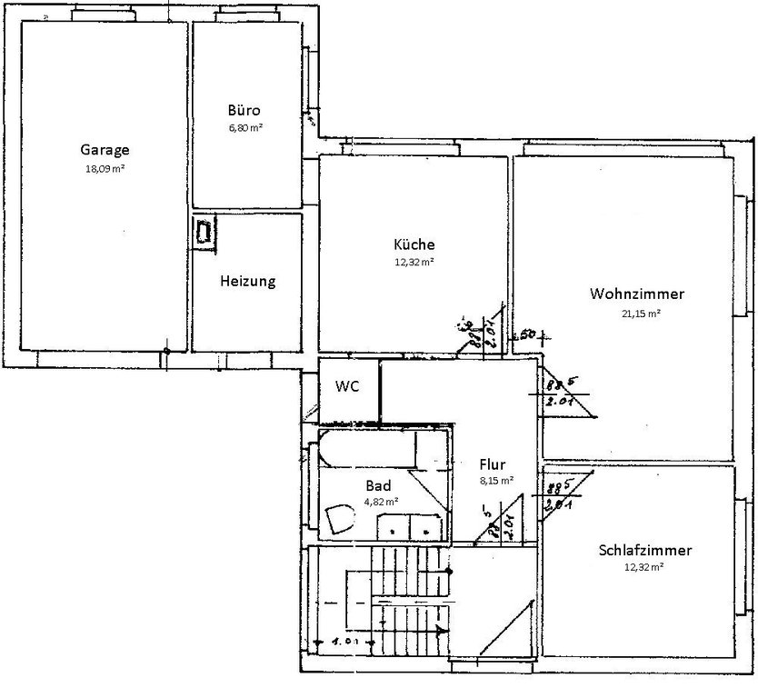 - Info für Kapitalanleger: das Wohnhaus wurde zuletzt zu insgesamt 1.100 € Kaltmiete vermietet (640 € Kaltmiete für die erdgeschossige Wohnung inkl. Garage + 460 € Kaltmiete für die Wohnung im Dachgeschoss.