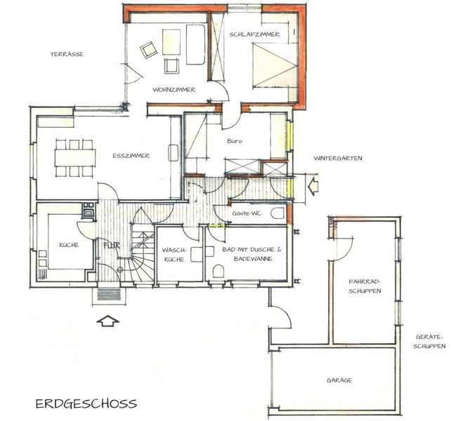 - Zimmer: 7, Wintergarten, 2 Bäder, 2 Küchen, Waschküche, Teilkeller, Terrasse, Balkon, Fahrradraum / Werkstatt, Garage, Gartenschuppen