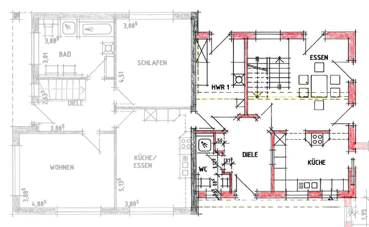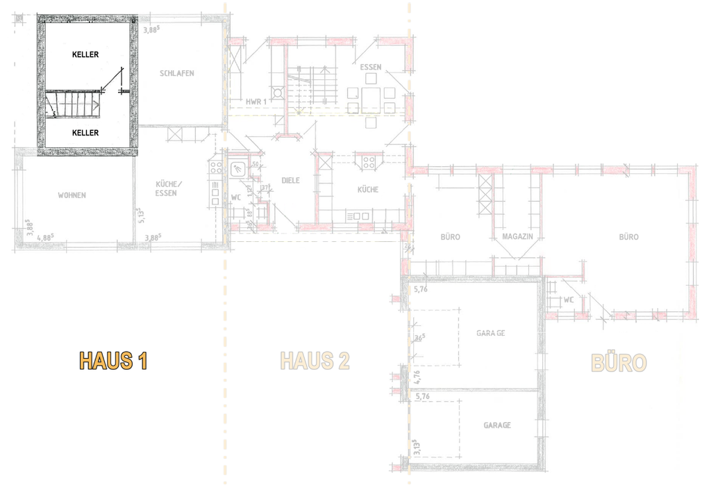 - Alle 3 Hausteile verfügen über einen eigenen Eingang