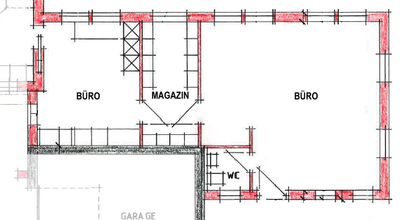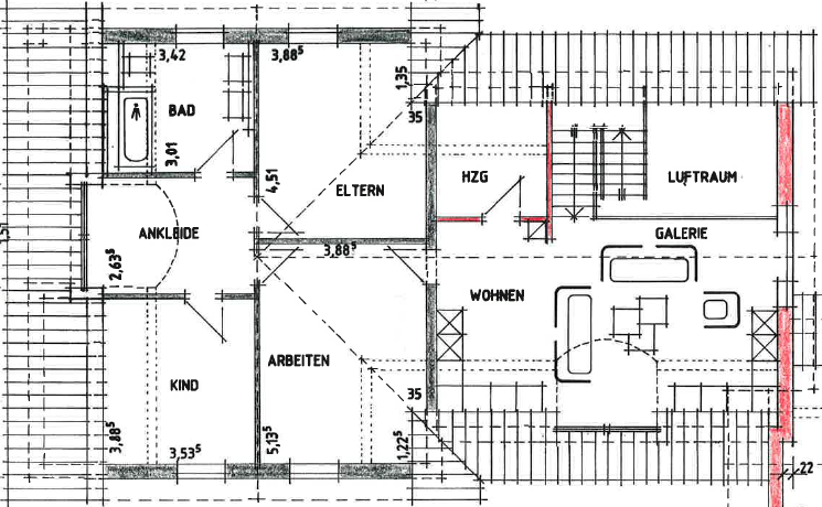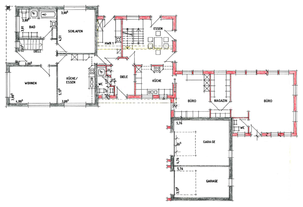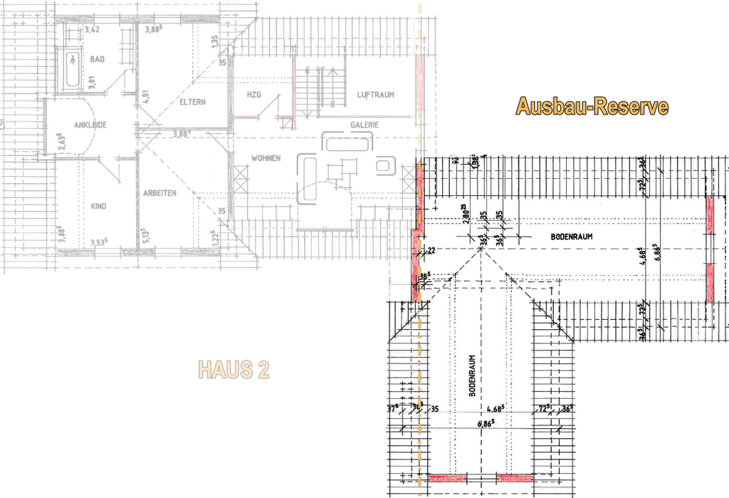 - große Ausbaureserven im Dachgeschoss (oberhalb vom Büro und von den beiden Garagen