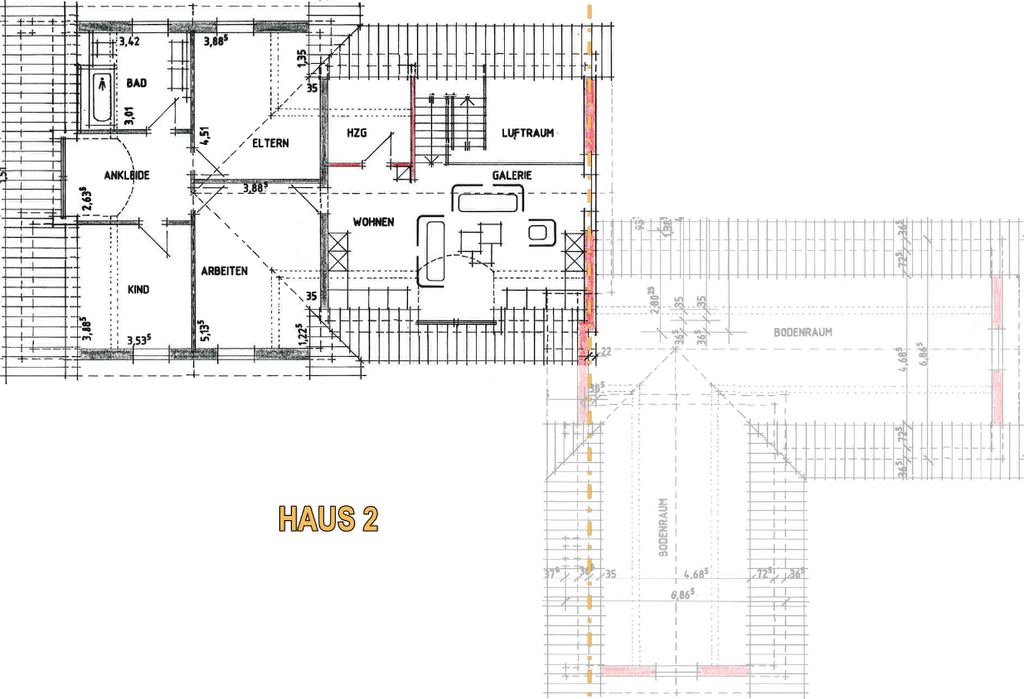 HAUS 2 | Zugehöriges Raumprogramm im Erd- und Dachgeschoss: