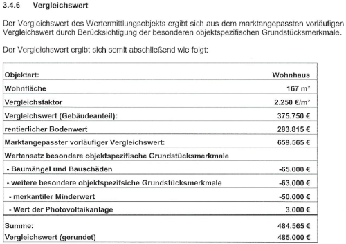 Der >Gutachterausschusses für Grundstückswerte Oldenburg-Cloppenburg< (Katasteramt) hat diesen Wasserschaden in deren Wertgutachten vom 03.08.2022 wie folgt berücksichtigt:
