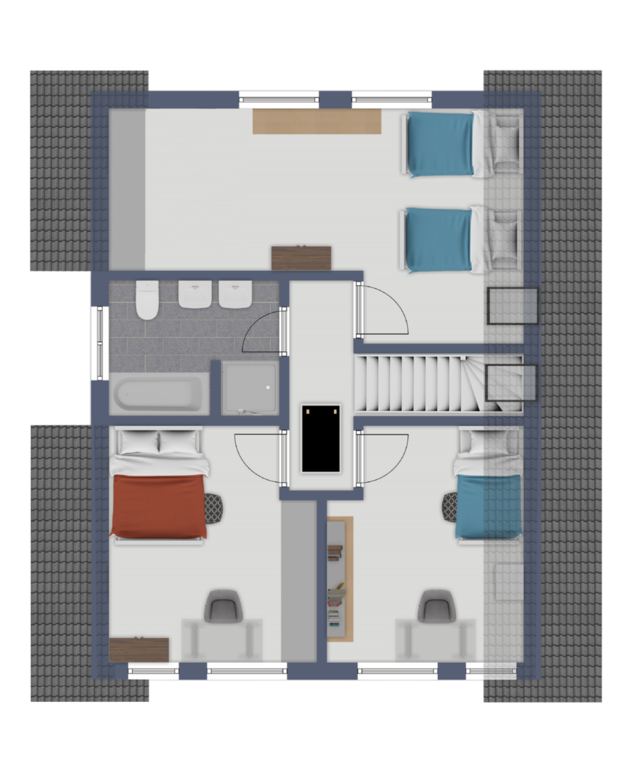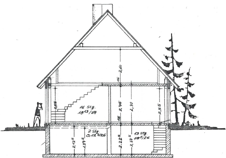 Die Grundrisse: Erdgeschoss | Dachgeschoss | Kellergeschoss