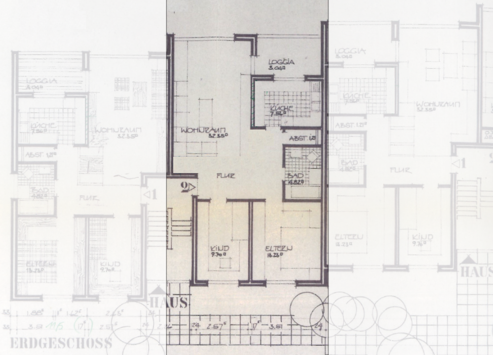 - Umbaumöglichkeit: die (Leichtbau)Wand zwischen Flur und Wohnzimmer könnte herausgenommen werden
