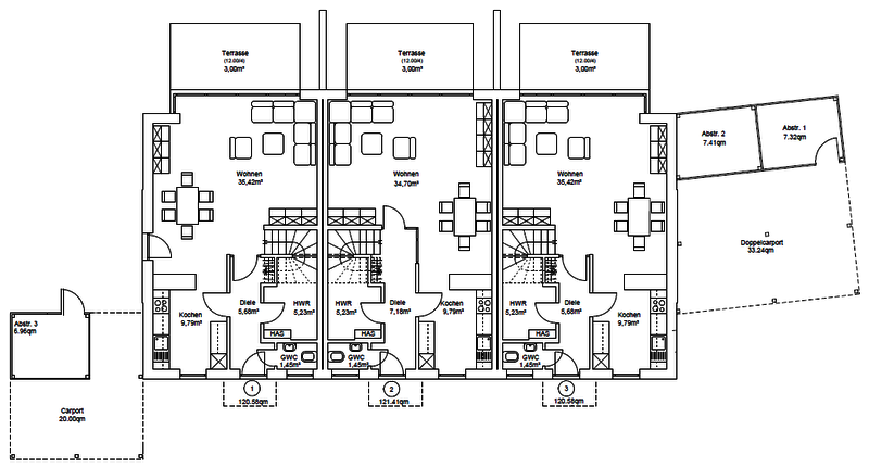 3 | Reihenendhaus (vorne) | verkauft | |||