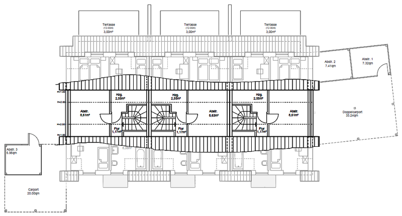- Endenergiebedarf: 57,7 (REH links) | 46,8 (RMH) | 54,8 (REH rechts) kWh/(m²*a)