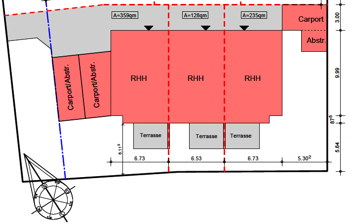 - ca. 235 m² bzw. 128 m² Grundstück in Südwest-Ausrichtung