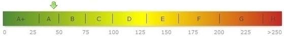 - Endenergiebedarf: 44 kWh/(m²*a), Energieverbrauch für Warmwasser ist enthalten