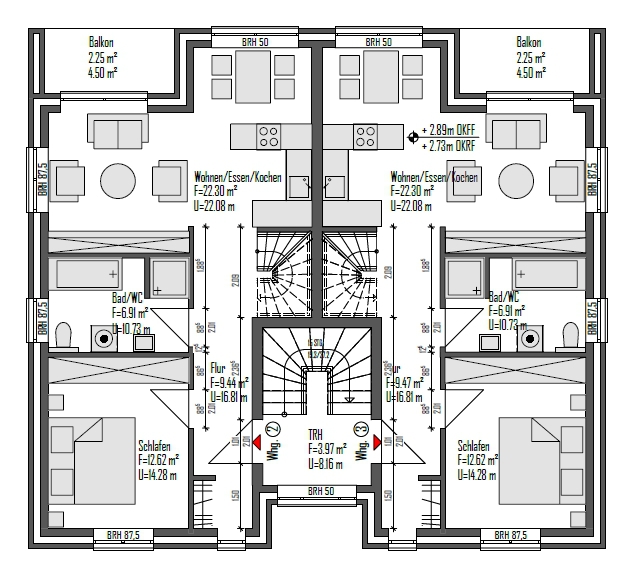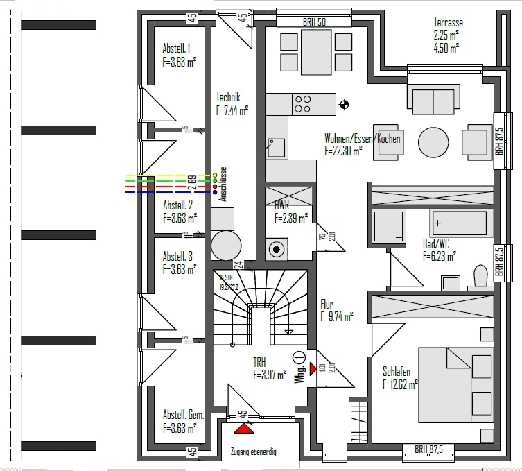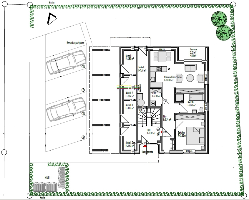 - Endenergiebedarf: 45,4 kWh/(m²*a), Energieverbrauch für Warmwasser ist enthalten
