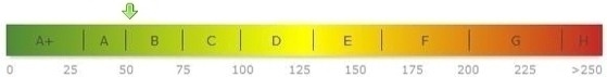 - Endenergiebedarf: 50,7 kWh/(m²*a), Energieverbrauch für Warmwasser ist enthalten, KfW70-Standard