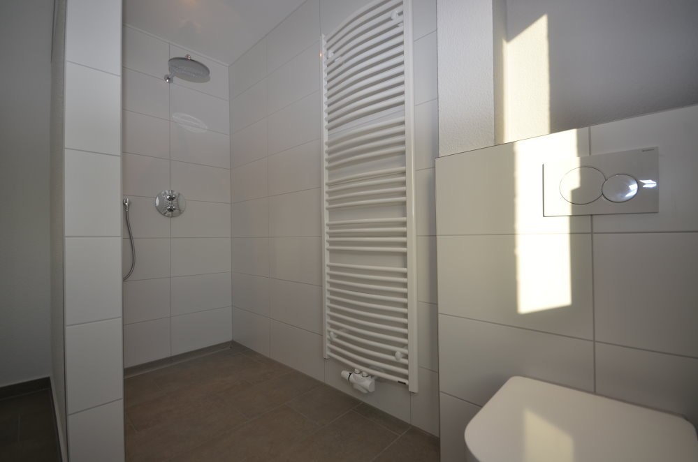- hochwertige Sanitärausstattung, z. B. der Marke Renova 1 Plan bzw. Clivia mit Echtglas-Duschabtrennung