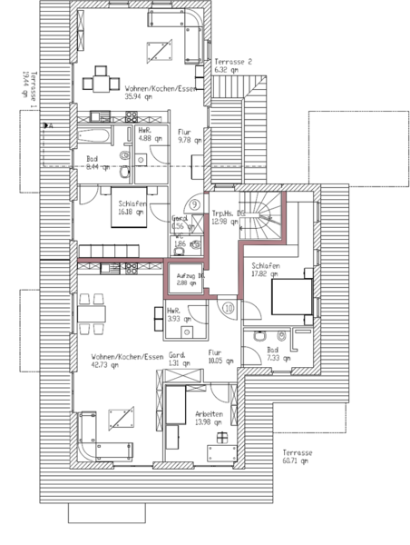 Wohnküche: | 17,05 m² | 32,09 m² | 21,83 m² | 35,94 m² | 42,73 m² |