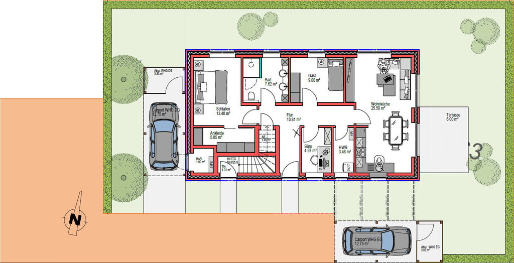 - ca. 88,94 m² Wohnfläche im Erdgeschoss + 3,84 m² Nutzfläche