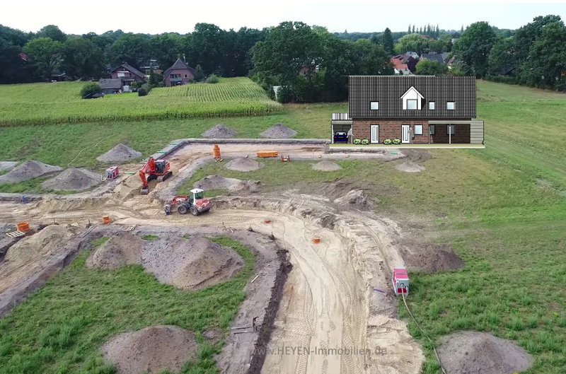 Die Lage am Rand des neuen WohnQuartiers mit viel Grün drumherum: