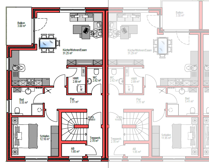 Die Maisonette-Wohnungen im Obergeschoss und Dachgeschoss:
