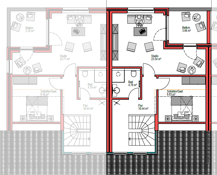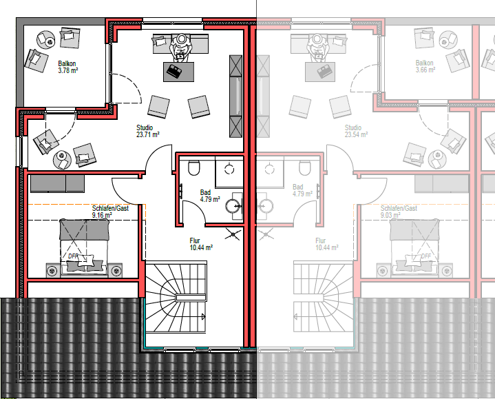 Schlafen / Gast: | 9,16 m² | 9,03 m² | 9,03 m² | 9,16 m² |