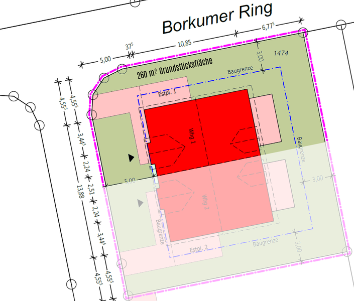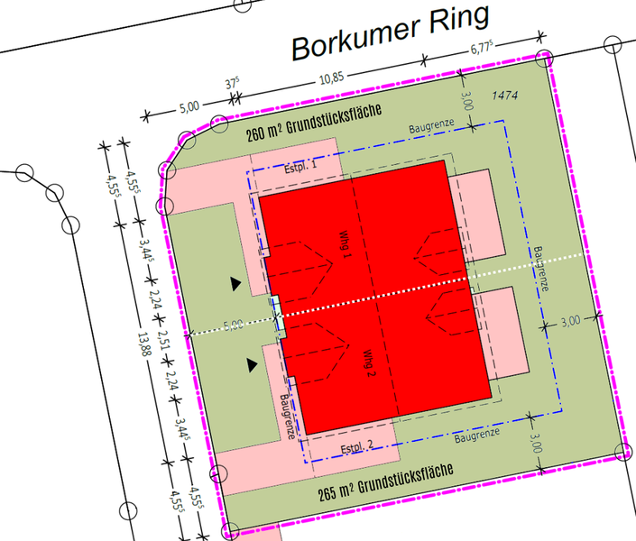 - 260 m² bzw. 265 m² Grundstücksflächel