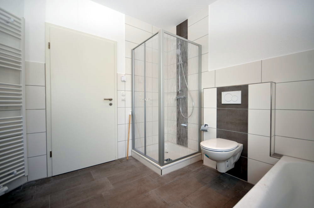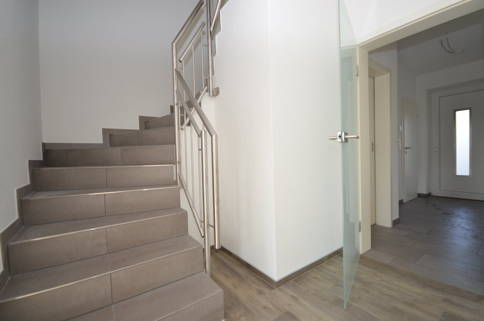 - Fußbodenheizung, Rollläden, z.T. elektrisch betrieben, Terrasse