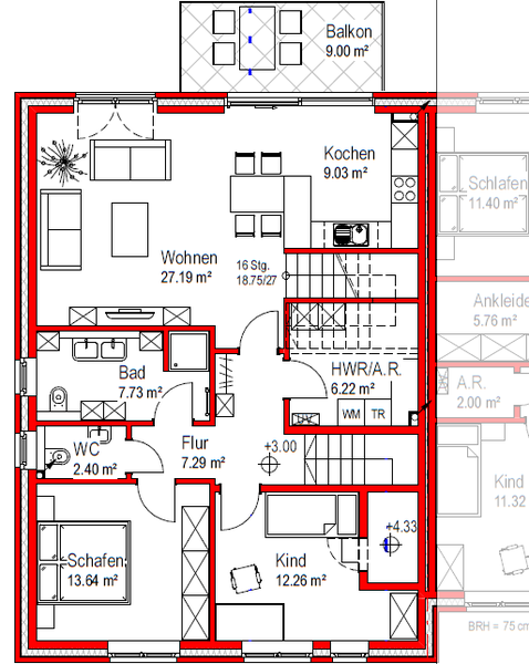 Kochen: | 9,03 m² | 9,03 m² | ||