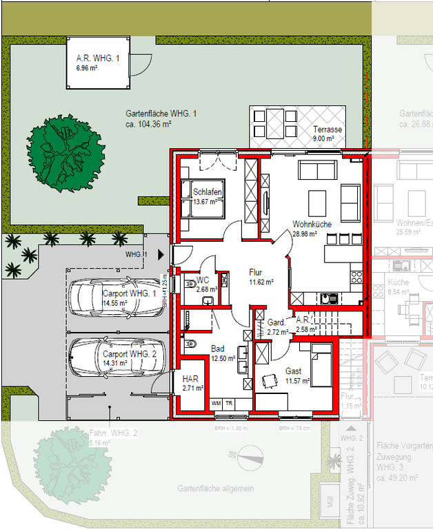Neue Eigentumswohnung mit Privatgarten, Carport etc.