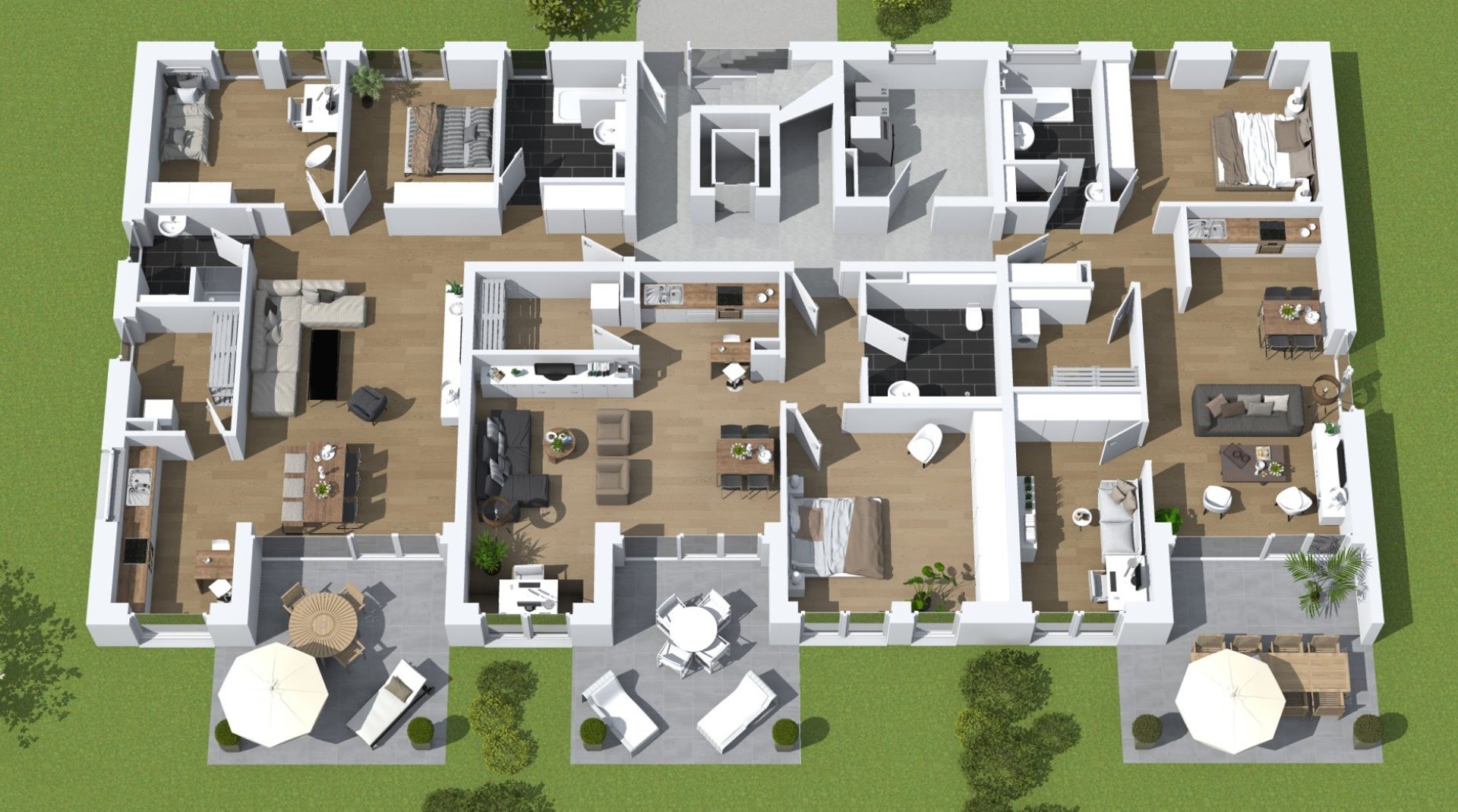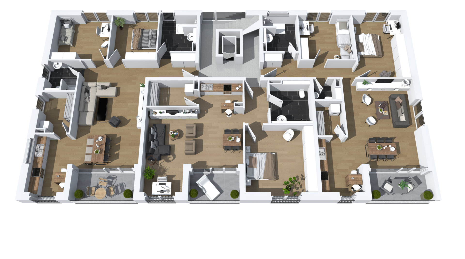 - die größeren Wohnungen haben neben einem Bad noch ein Gäste WC;